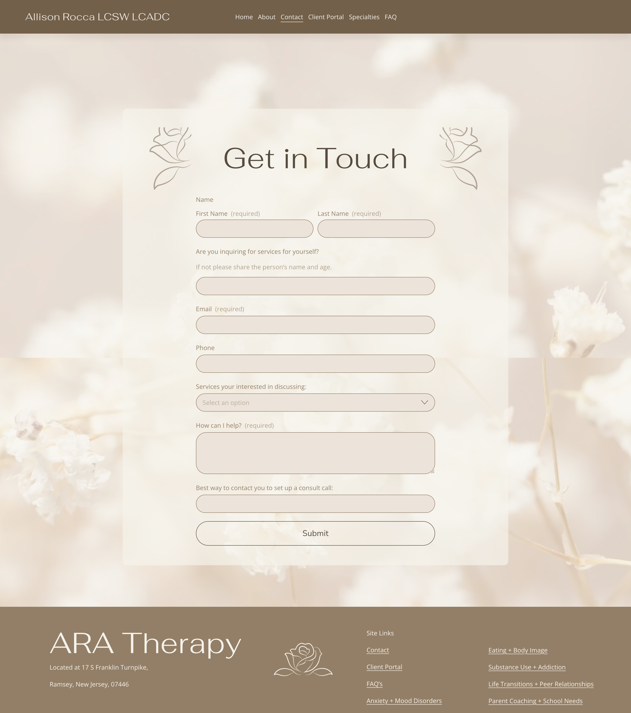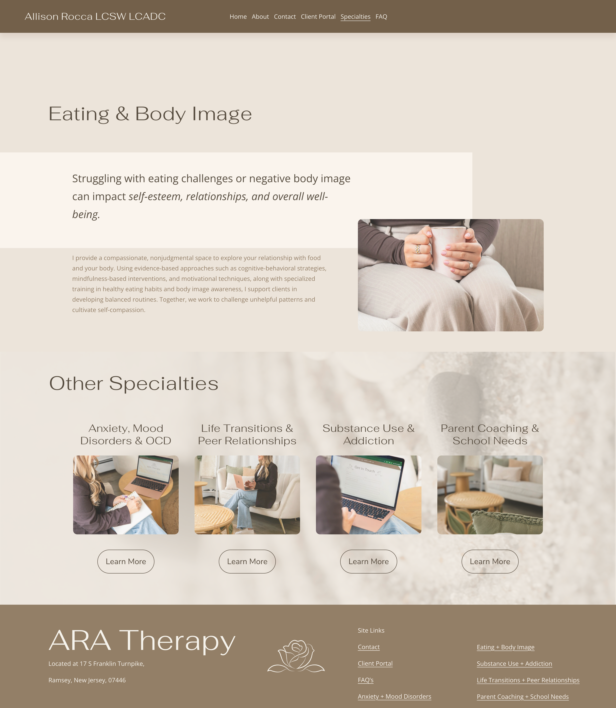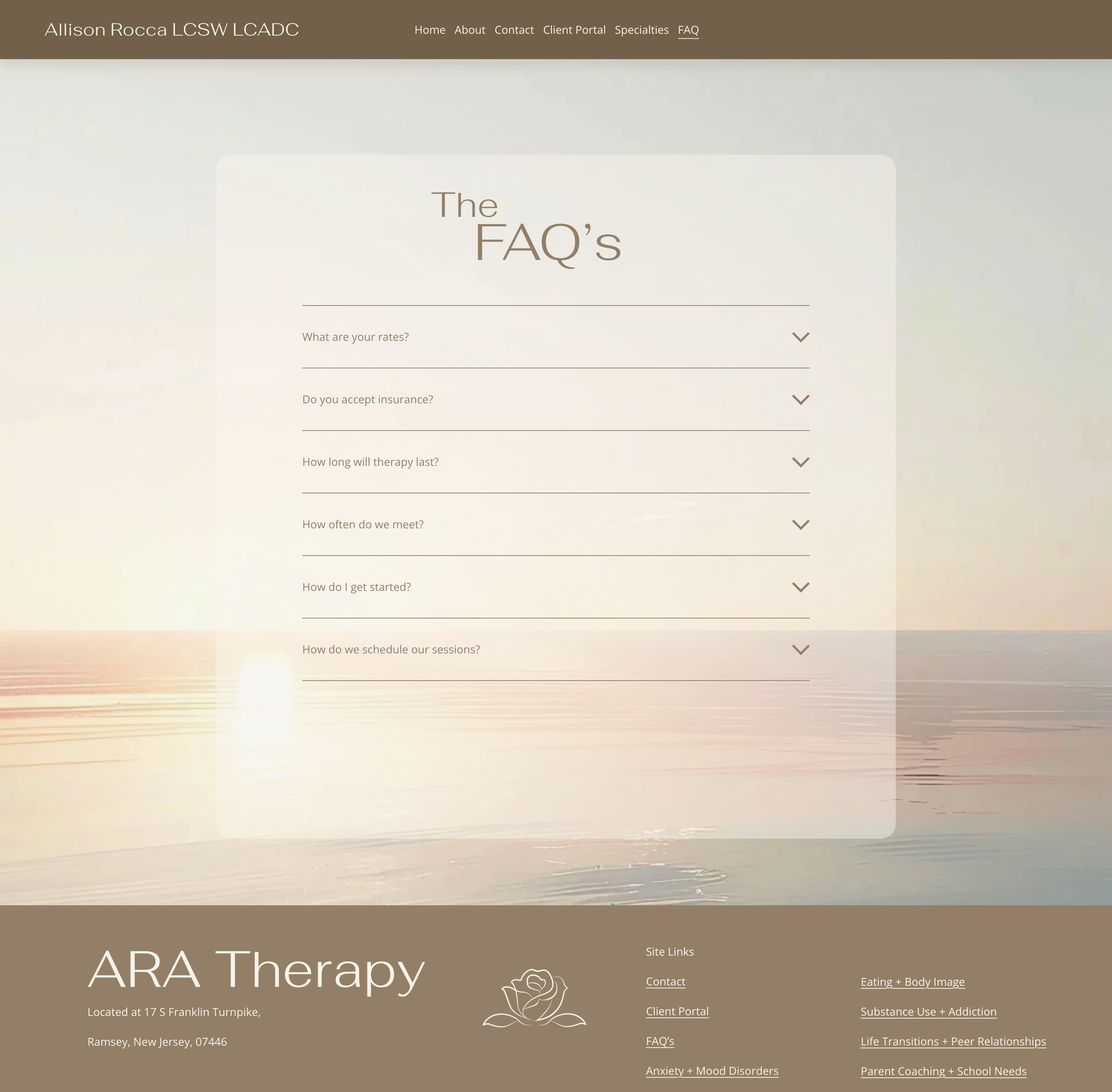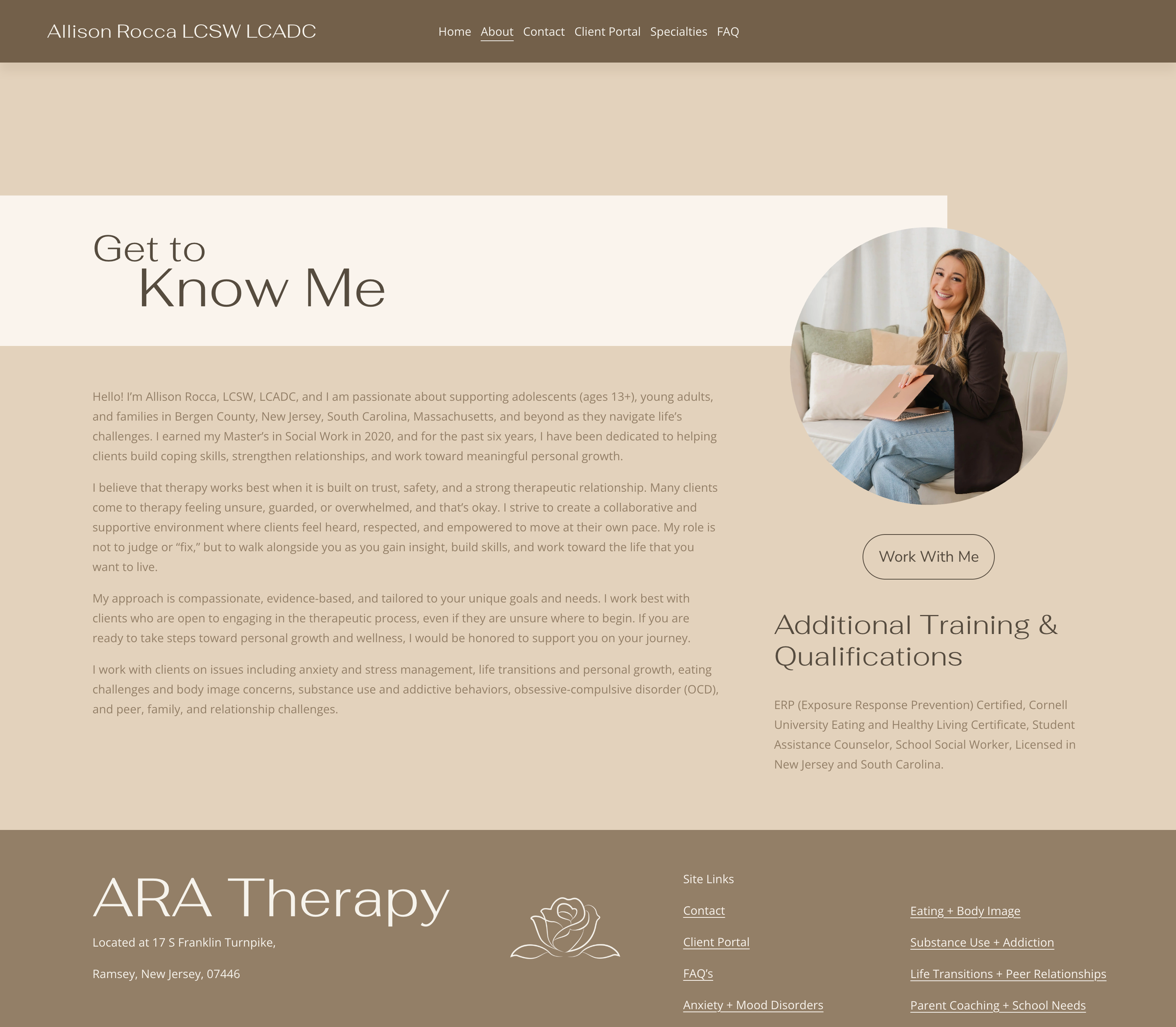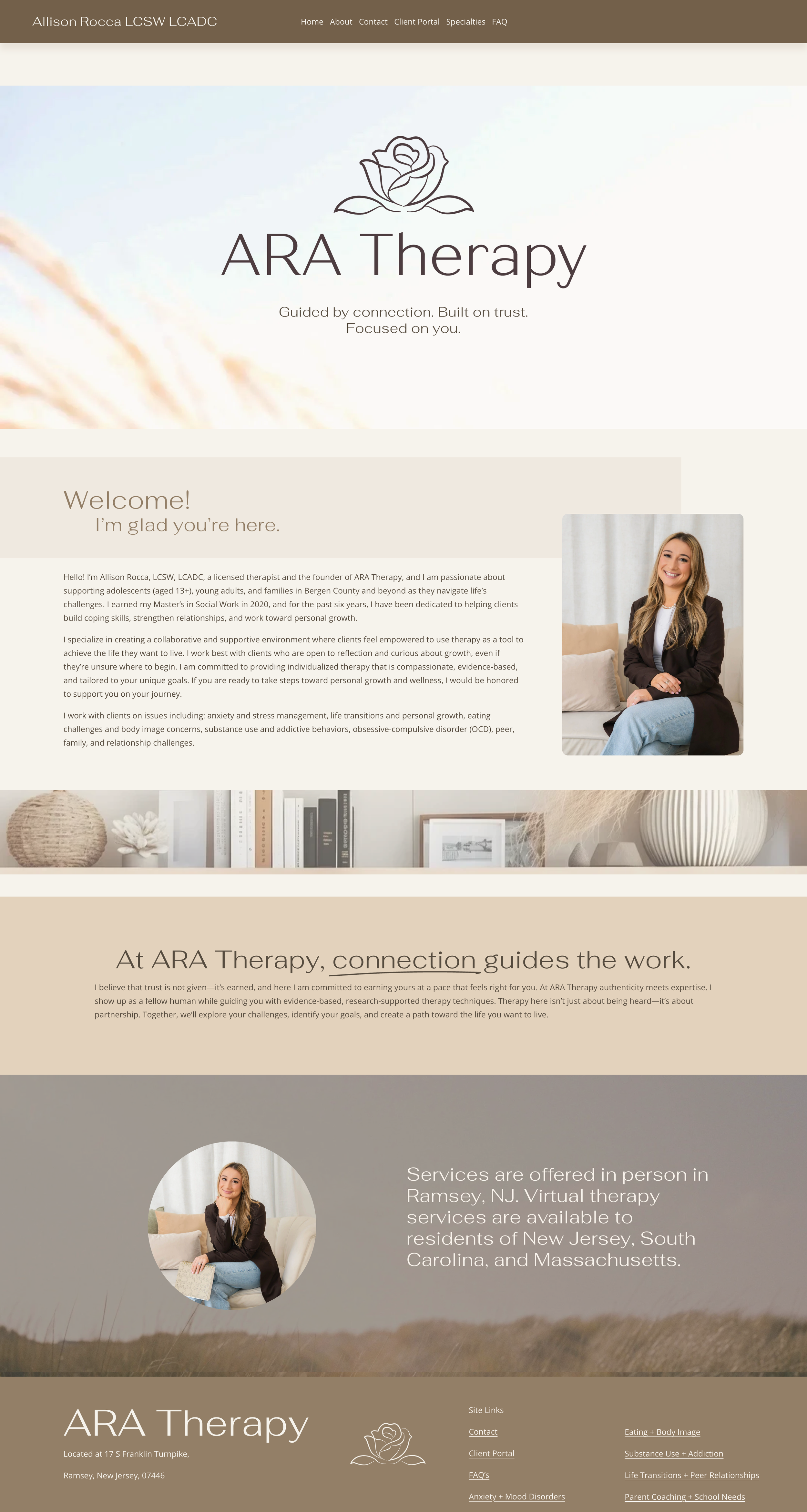 In December 2025, I partnered with a developmental psychologist to design and launch a website for her new practice, ARA Therapy. Together, we defined the visual direction, color palette, and content strategy to ensure the site authentically reflected her vision and values.